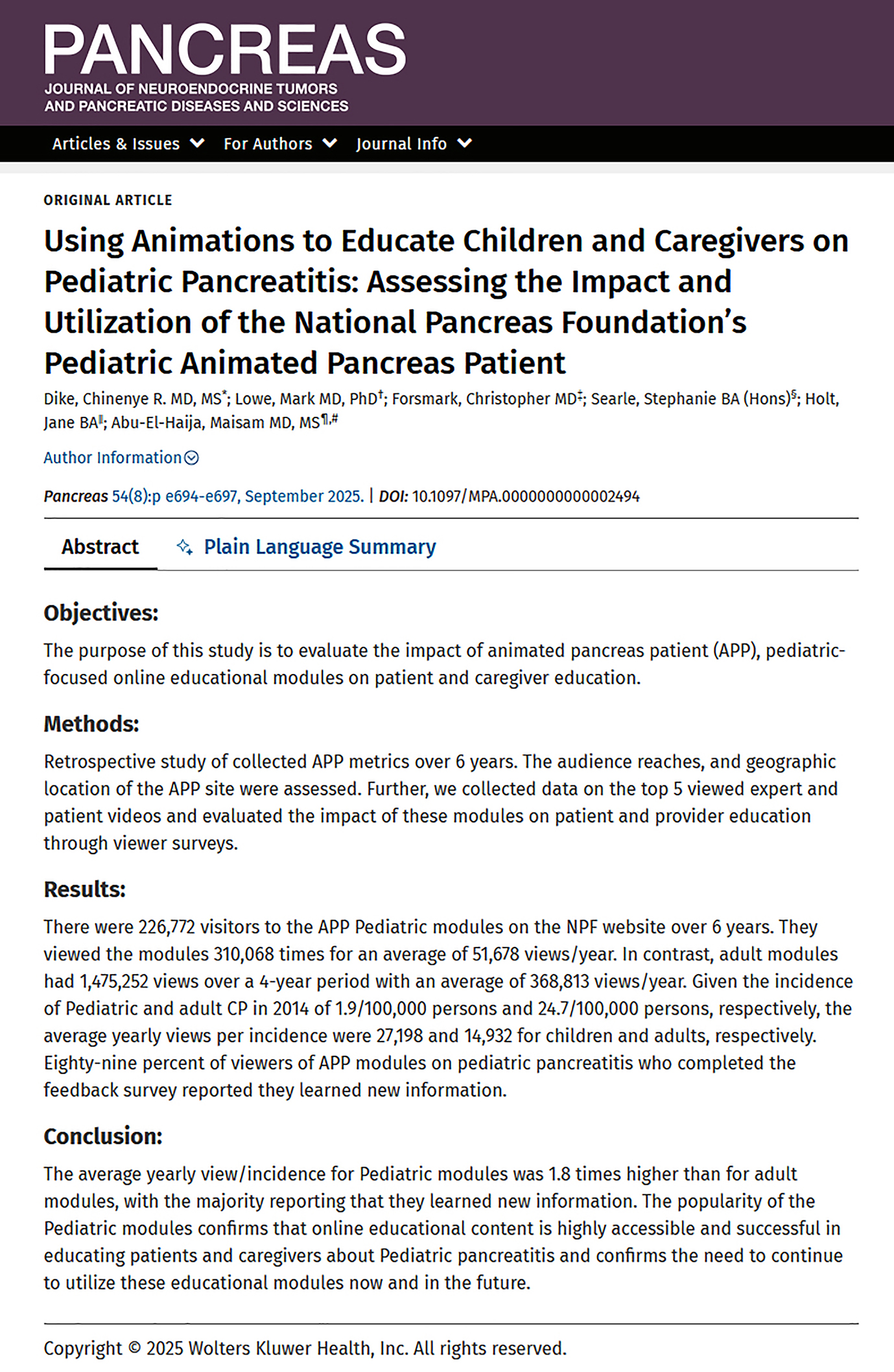 Using Animations to Educate Children and their Caregivers about Pediatric Pancreatitis – Read More